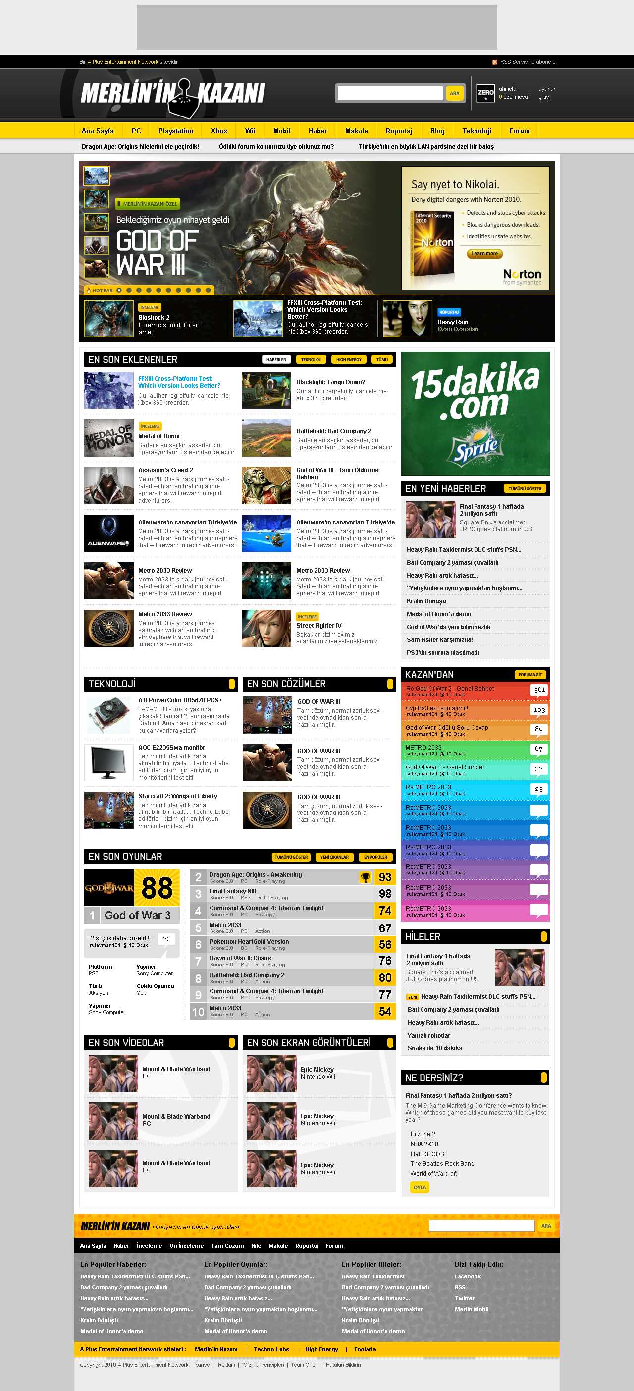 Landing page for Turkey's leading gaming portal